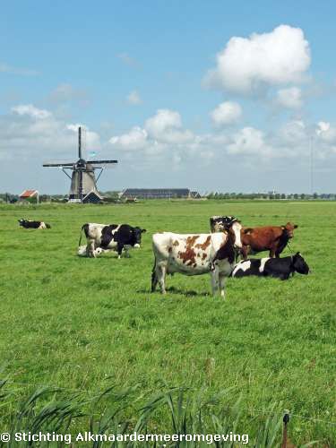 | Beschrijving | : | Koeien in de Zwartedijkspolder met op de achtergrond de Noordermolen. |